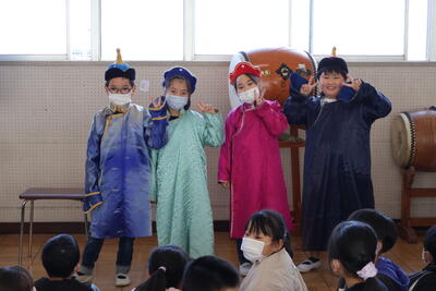 1年1組・・・・「とくいなこと発表会」をしました。「ほめほめタイム」(表彰ごっこ)でウオーミングアップをしてから、論語・計算・書写・図工・縄跳び・ダンスのチームに分かれて、得意なことを発表しました。最後に、ハンドベルの演奏と「こんな2年生になりたい」カードを掲げて締めくくりました。おうちの方々にたくさん拍手をいただき、友達にもほめてもらって、みんなニコニコでした。