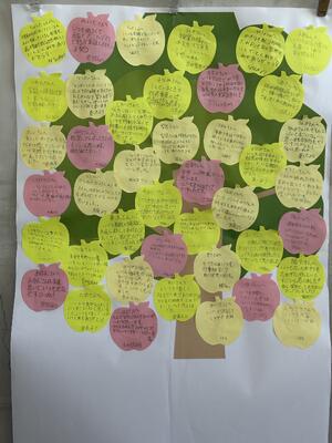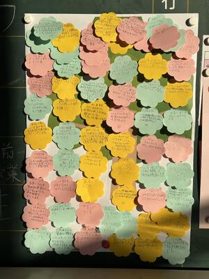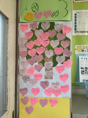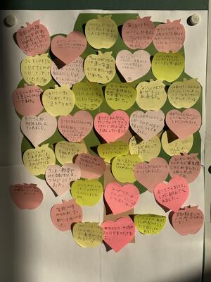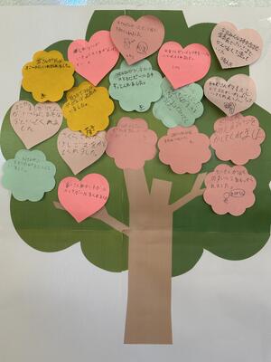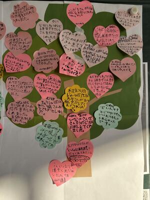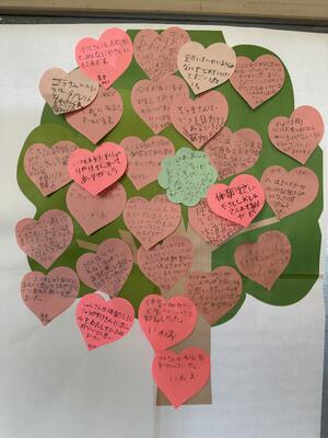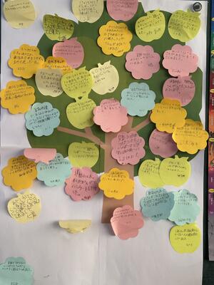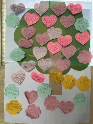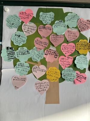 各クラスで『人権の木』を作成しました。お友達の優しさに触れた経験を付箋に書き、様々なお花を咲かせていました。