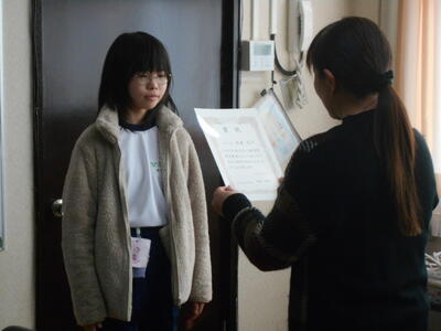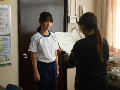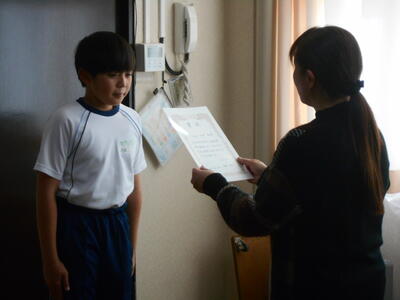 今回は、5~6年生の児童4名が代表で校長先生から賞状を直接頂きました。