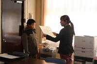 建築現場でいくつもの重機が動いている様子を作品にしました。睦学区の町が移り変わる瞬間を捉えているかのようでした。