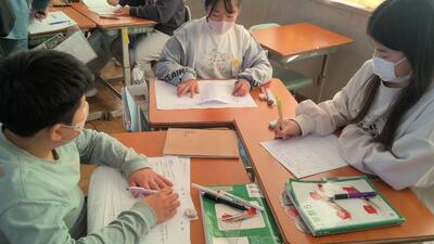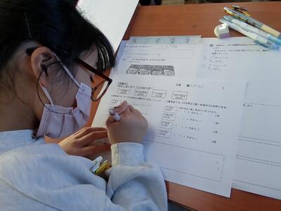 さて、2割引の計算をどのように進めたのか、グループになって説明し合いが始まると・・・あれ?計算ミス発見!!子ども同士で検証して、解決していきます。「私はお弁当1種類ずつ2割引の計算をしていたけど、4個を合計してから2割引の計算をしても同じ答えになるんだ」と新たな気づきが芽生えました。
