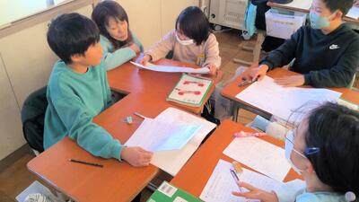 子どもたちは自分が立てた式を指でなぞりながら、自分の考えを理解してもらおうと必死で説明します。それに応え、友達の説明に身を乗り出して理解しようとする姿勢が素敵でした。