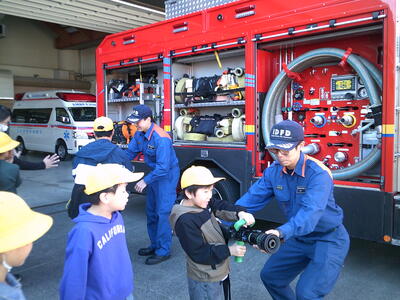 火事からみんなを守るために働いている人々の仕事の努力や工夫について学んだことを、実際に見て体験してきました。