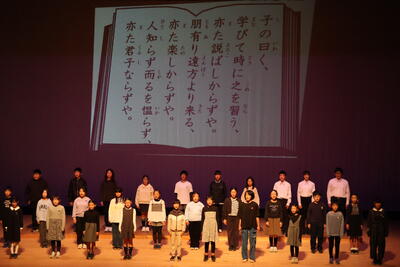 11月9日(日)藩校学習館祭りが城址公園ホールで行われました。本校からは、4年生が論語作文発表、5年生が論語大朗誦・ゼロカーボンプレゼン発表、6年生が小中学生プレゼン発表に学校代表児童が参加しました。