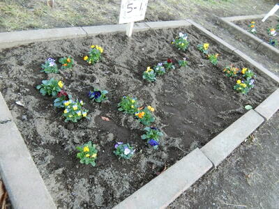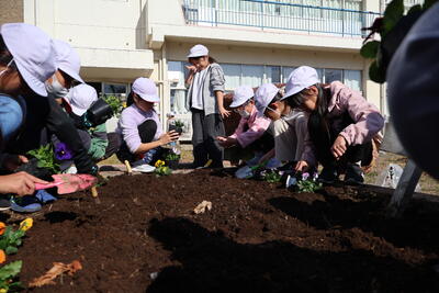 今回は、各クラスの花壇にパンジーやビオラの花を植えました。