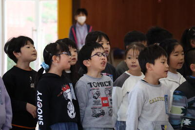 感謝の気持ちを伝えようと、口を大きく開く1・2年生の姿が印象的でした。