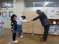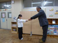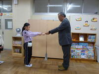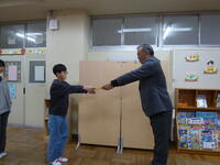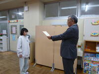 代表児童から、お世話になっているボランティアの皆様に、感謝の言葉を述べました後、 みんなで「花は咲く」を合唱してプレゼントしました。