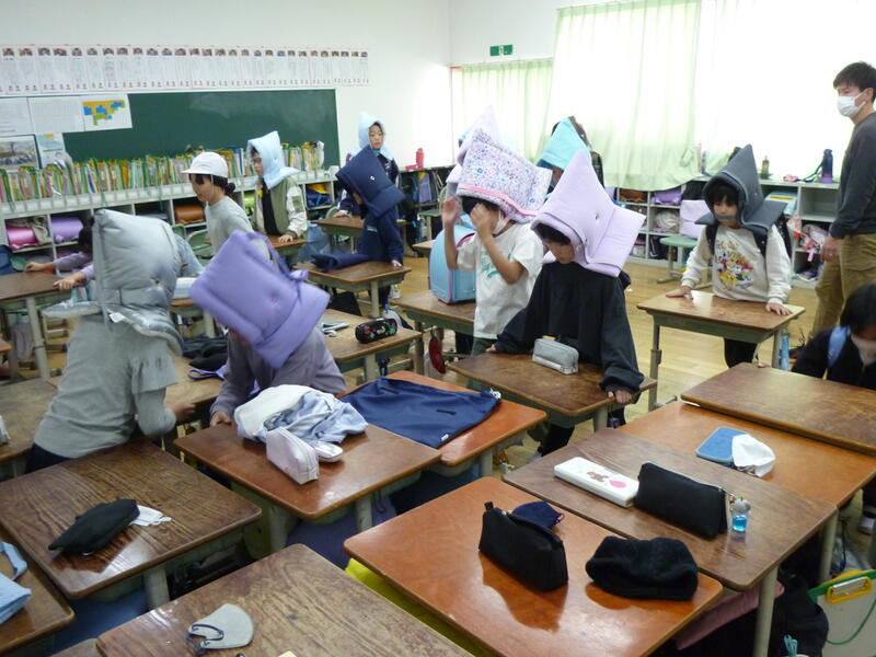 今日は、竜巻を想定して、避難訓練を実施しました。安塚地区では、過去に大きな竜巻の被害がありました。いざというときのために、正しい行動ができるように落ち着いて行動できることの大切さを指導しました。