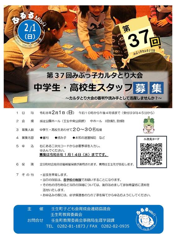 【ふ.る.るMibu】「第37回みぶっ子カルタとり大会」運営スタッフ募集