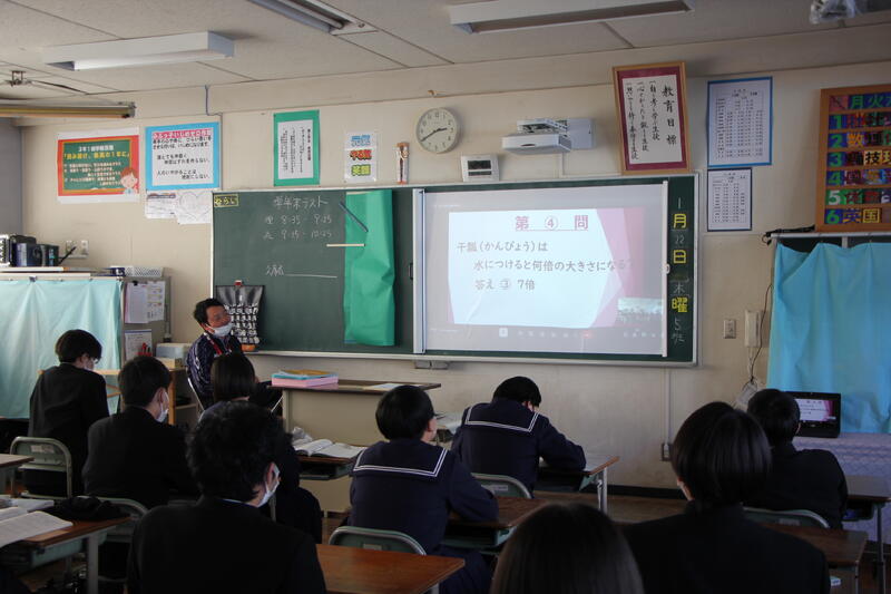 21日(水)5校時終了後は、給食集会が行われました。クイズ形式で学校給食の歴史や給食にまつわるエピソードなどを給食委員が紹介しました。「命を食べて命を守る」食に関する関心が深まりました。