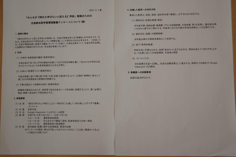 明日も学びたい学校に~「これして・あれ欲しい」アイディア募集!