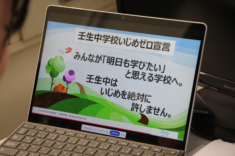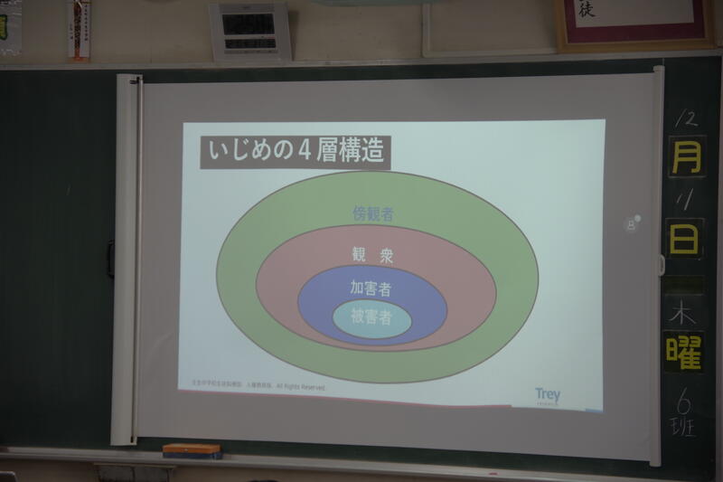 10日(水)人権週間中に、いじめゼロ集会が開かれました。いじめの定義、いじめの4層構造、国内や海外でのいじめ防止に関する取組について理解を深めた後、人権週間実行委員長吉津谷さん、副委員長の三上さんの進行で、壬生中いじめゼロ宣言の採択を行いました。みんなが「明日も学びたい」と思える学校の実現に向かって生徒、教職員一同、決意を新たにしました。