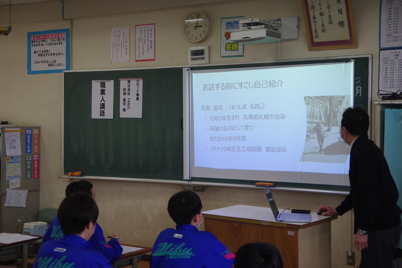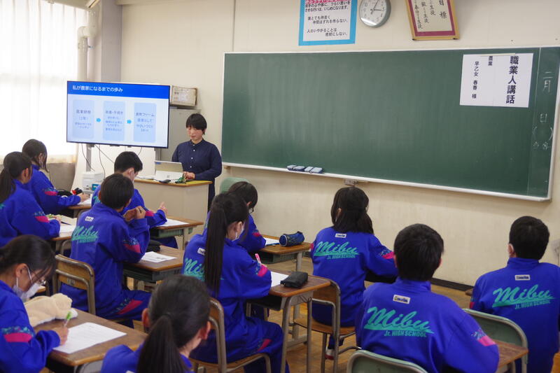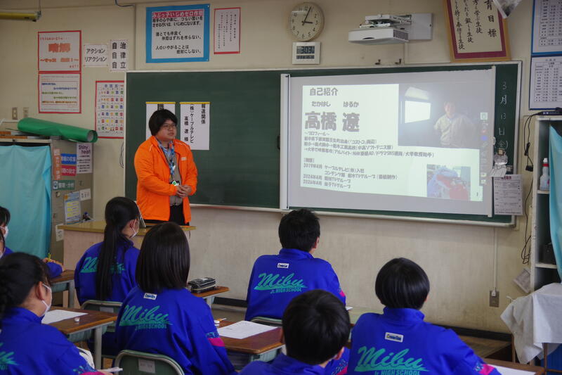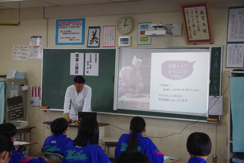 13日(金)56校時、1年生において、職業人講話を実施しました。キャリア教育の一環です。企業人や飲食店経営者、テレビ局、農業など幅広い職種の方にお越しいただき、働くことの楽しさや意義、将来職業人になるにあたって今から心がけておきたいことなどについてお話をいただきました。お忙しい中、壬生中生のためにお話をいただきありがとうございました。また、本講座を行うにあたってご協力いただいた壬生町役場の皆様、大変お世話になりました。
