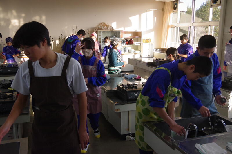 23日(火)56校時、2年生の家庭科の授業では調理実習がありました。2名の家庭科ボランティアの方にサポートを受けながら、グループで協力し合い、楽しく活動する姿が見られました。片付けもきちんと行う姿、立派です!