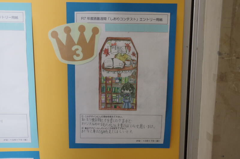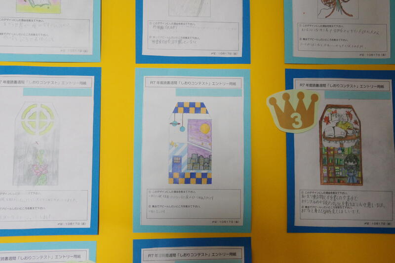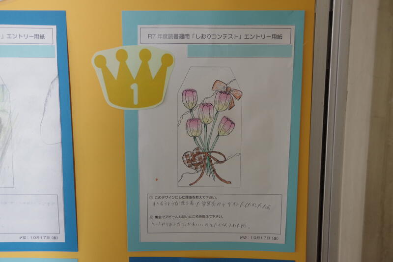 図書委員会からしおりコンテストの結果が発表されました。どの作品も素敵なものばかりです。入賞したみなさん。おめでとうございます!