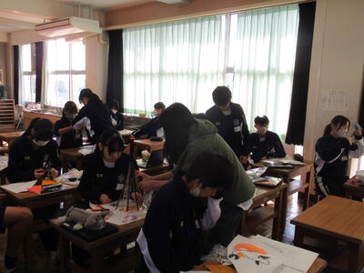 学校生活の様子・ブログ 全ての記事 全ての記事 カテゴリ 学校行事 第1学年 第2学年 第3学年 特別支援学級 部活動 生徒会活動 学校生活 アーカイブ 2025年11月 (3) 2025年10月 (22) 2025年9月 (24) 2025年8月 (3) 2025年7月 (23) 2025年6月 (25) 2025年5月 (25) 2025年4月 (16) 2025年3月 (13) 2025年2月 (21) 2025年1月 (17) 2024年12月 (14) 2024年11月 (14) 2024年10月 (23) 2024年9月 (13) 2024年8月 (4) 2024年7月 (15) 2024年6月 (22) 2024年5月 (13) 2024年4月 (13) 2024年3月 (22) 2024年2月 (25) 2024年1月 (20) 2023年12月 (25) 2023年11月 (27) 2023年10月 (27) 2023年9月 (27) 2023年8月 (11) 2023年7月 (22) 2023年6月 (29) 2023年5月 (35) 2023年4月 (28) 2023年3月 (28) 2023年2月 (27) 2023年1月 (17) 2022年12月 (28) 2022年11月 (23) 2022年10月 (22) 2022年9月 (28) 2022年8月 (12) 2022年7月 (16) 2022年6月 (26) 2022年5月 (22) 2022年4月 (19) 2022年3月 (25) 2022年2月 (22) 2022年1月 (24) 2021年12月 (26) 2021年11月 (25) 2021年10月 (23) 2021年9月 (16) 2021年8月 (4) 2021年7月 (9) 2021年6月 (6) 2021年5月 (7) 2021年4月 (6) 2021年3月 (14) 2021年2月 (13) 2021年1月 (5) 2020年12月 (14) 2020年11月 (5) 2020年10月 (6) 2020年9月 (8) 2020年8月 (4) 2020年7月 (8) 2020年6月 (8) 2020年5月 (17) 2020年4月 (12) 2020年3月 (3) 2020年2月 (2) 2020年1月 (7) 2019年12月 (0) 2019年11月 (2) 2019年10月 (6) 2019年9月 (8) 2019年8月 (0) 2019年7月 (4) 2019年6月 (7) 2019年5月 (2) 1件 1件 5件 10件 20件 50件 100件 2年1組「美術」~和製ランプの製作~ 投稿日時 : 11:41 南犬飼中学校管理者 カテゴリ: 11月8日(金)1校時、2年1組の美術を参観しました。和製ランプを製作していますが、今日が製作最終日になっています。すでに完成している生徒もいましたが、デザインに凝り過ぎてしまい、計画通りに進まない生徒もいるようです。デザインは生徒独自のもので、とてもバラエティーに富んでいるように思いました。素敵な和製ランプの完成がたのしみですね! {{options.likeCount}} {{options.likeCount}} 123456789 »