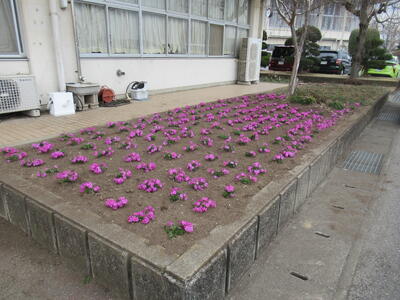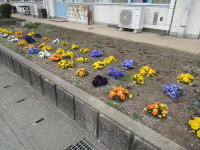 校長室前の庭に、綺麗な花を植えました。