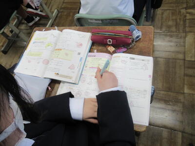 12月5日(金)5,6校時、2学年の授業を参観しました。今日の学習は、立志式に向けて「誓いの言葉」を色紙に書いていました。自分の誓いを表す言葉を漢字一文字で表し、その横にその言葉に込めた自分の想いや決意を表現していました。立志を機に、改めて将来を見つめ、決意を新たにすることの重要性を実感します。