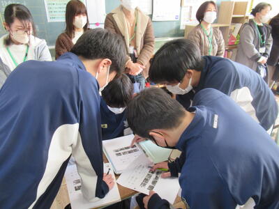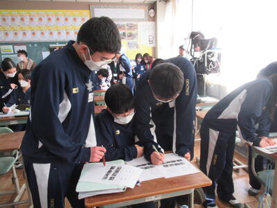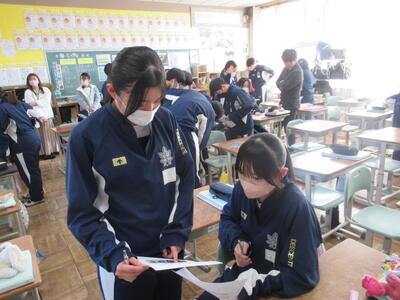 1月14日(水)5校時、第1学年は学活で「高校調べ」をしていました。まだ、漠然としているかもしれませんが、興味のある高校を1校に絞り、「どんな学習をするのか」「どんな資格がとれるのか」「どんな部活動があるのか」「通学方法は」「どんな伝統があるのか」などを、各校のホームページなどを参考にしながら、一生懸命にまとめていました。