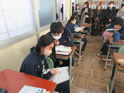 1月30日(金)、5校時目に授業参観があり、多くの保護者が来校しました。本年度、最後の授業参観となりましたが、生徒たちの生き生きとした取組を多くの保護者に参観していただき、とても有意義な時間を提供できました。