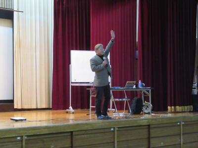 また、授業参観後は、全生徒と保護者を対象に、子育て・親育ち講座を開催しました。講師は、NPO法人日本アドラー心理学カウンセリング協会理事長の鈴木稔先生で、「子供たちはこの国の宝だ!~多難の時代を生き抜く若者に育てる』という演題でご講話いただきました。この国の宝である子供たちにどう関わり接していくべきかを、実例を基に詳しくお示しいただきました。講話が終了して、体育館出口で生徒一人一人に挨拶を交わしながら見送っていた鈴木先生に感銘を受けた生徒が沢山いたことは言うまでもありません。