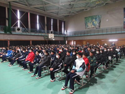 いよいよ3学期が始まりました。「1年の計は元旦にあり」と言いますから、本校生徒の皆さんは、1年の目標を見据え、その実現に向けて努力しようと、決意を新たにしていることと思います。また、学校も1年間の総まとめの時期を迎えました。1、2年生は学年として、3年生は中学校生活の総決算をするわけです。一人一人の願いや希望の達成はもちろんですが、学校全体としても「充実した1年を終えることができた」と胸を張って言えるよう、3学期も共に努力していきたいと思います。