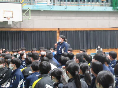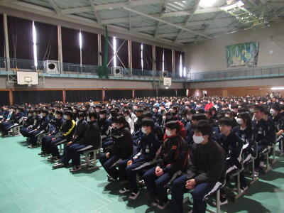さて、本校の3年生は、現在、県内の私立高校入試の結果が送られて来たところです。これから、公立高校受験に向けて頑張る生徒もたくさんいます。1年生の皆さんも、2年後はこのような状況になりますので、今から自分の進路をしっかりと見据えて学習に取り組んでほしいと思います。
