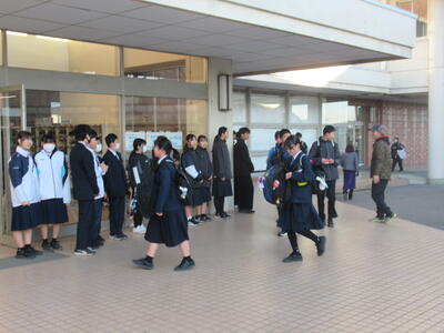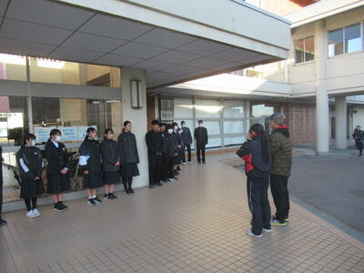 2月4日(水)早朝、昇降口前から、爽やかな明るい挨拶が聞こえてきました。生徒会が企画した「犬中あいさつの日プロジェクト」です。今日の担当は生徒会役員と資源委員です。月2回の実施を予定いる「あいさつの日プロジェクト」ですが、朝から生き生きとした声が響き渡ることは、いつ見ても気持ちのよいものです。最近は、町内の小中学校でもインフルエンザ感染の影響で学年休業や学級休業となっている学校もあります。本校は今のところ通常どおり生活できていますが、感染予防には十分に気を付けて生活していきたいです。生徒たちの元気なあいさつが、何よりの薬ですね!