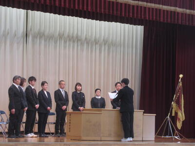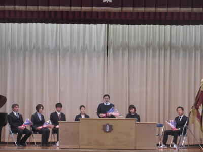生徒代表からは感謝の言葉と花束が手渡され、会場は別れを惜しむ温かな雰囲気に包まれました。先生方と過ごした日々は、生徒一人一人の心に深く刻まれ、今後の学校生活や人生の大きな糧となることと思います。