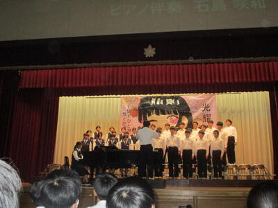 待ちに待った輝光祭がやってきました。今年のテーマは「光耀白書~繋ぐひと時・繋ぐ記憶~」です。光耀には、光り輝く姿を表しています。生徒一人ひとりが準備から、仲間と協力して作品を作り、一人ひとりの特別な色の個性が輝く姿を、南犬飼中の新しいページ(伝統)に残していくという意味が込められています。みんなで作り上げてできた時間を繋ぎ、大切な記憶にし、多くの人に繋いでいこうという思いがあります。そんなすばらしい思いを、今日の合唱コンクールで大いに発揮してくれたようにも感じました。合唱コンクールでの各クラスの思いが、クラスの仲間や担任の先生、そして来校してくれた保護者の皆さんの胸にしっかり届いていたように思います。さて、明日はどんな思いが届けられるか、本当に楽しみです!