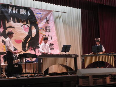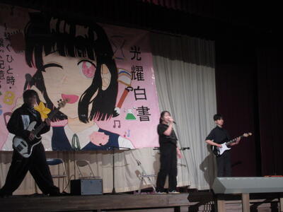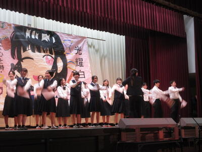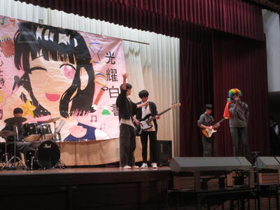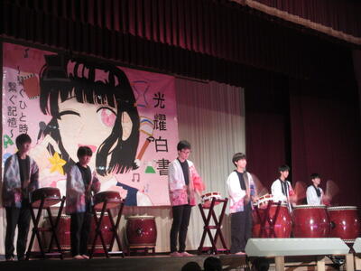 輝光祭2日目。今日は、セカンドオープニング、和太鼓、少年の主張、広島平和派遣事業、指人形劇、弾き語り&漫才、バンド&合奏&合唱、一般公開(各種イベント)、エンディングと盛りだくさんの内容で、生徒たちの光り輝く姿がたくさん見られました。昨日と打って変わり、悪天候となってしまい、外で企画したイベントの書道パフォーマンスなどは旧体育館での実施となりましたが、多くの保護者や一般の方に来校していただき、大いに盛り上がりました。2学期が始まってちょうど中間地点に来ているところですが、今回の輝光祭で得た級友やイベント仲間との絆は、いつまでも繋がり続けることでしょう。