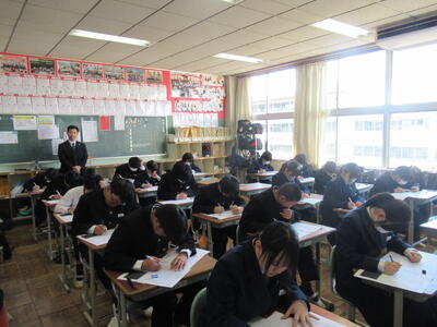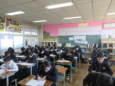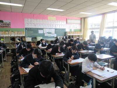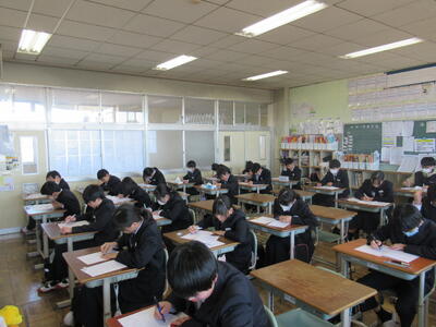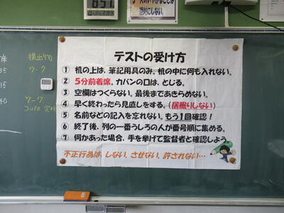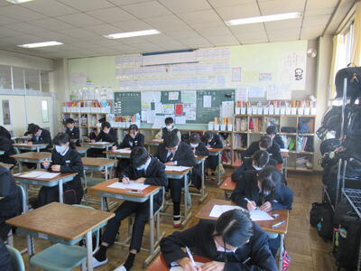 1、2年生学年末テスト2日目です。1年生は(英語、社会、理科)、2年生は(理科、音楽・保体、数学)のテストです。今年度最後の定期テストですので、日頃の学習の成果を大いに発揮してほしいと思います。常に言われていることですが、どんなテストであれ、結果を客観的に分析して、「何ができていたのか」「何ができなかったのか」を確認し、今後の学習の改善に努めることです。改善なくして進歩や成長はありません。生徒の皆さんの健闘を期待しています。