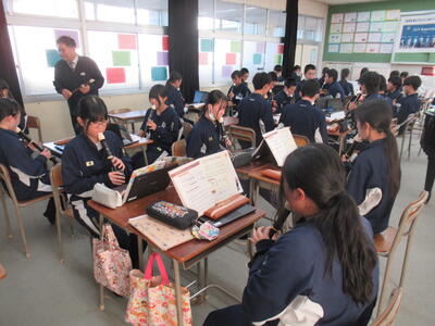 学校生活の様子・ブログ 全ての記事 全ての記事 カテゴリ 学校行事 第1学年 第2学年 第3学年 特別支援学級 部活動 生徒会活動 学校生活 アーカイブ 2025年12月 (6) 2025年11月 (19) 2025年10月 (22) 2025年9月 (24) 2025年8月 (3) 2025年7月 (23) 2025年6月 (25) 2025年5月 (25) 2025年4月 (16) 2025年3月 (13) 2025年2月 (21) 2025年1月 (17) 2024年12月 (14) 2024年11月 (14) 2024年10月 (23) 2024年9月 (13) 2024年8月 (4) 2024年7月 (15) 2024年6月 (22) 2024年5月 (13) 2024年4月 (13) 2024年3月 (22) 2024年2月 (25) 2024年1月 (20) 2023年12月 (25) 2023年11月 (27) 2023年10月 (27) 2023年9月 (27) 2023年8月 (11) 2023年7月 (22) 2023年6月 (29) 2023年5月 (35) 2023年4月 (28) 2023年3月 (28) 2023年2月 (27) 2023年1月 (17) 2022年12月 (28) 2022年11月 (23) 2022年10月 (22) 2022年9月 (28) 2022年8月 (12) 2022年7月 (16) 2022年6月 (26) 2022年5月 (22) 2022年4月 (19) 2022年3月 (25) 2022年2月 (22) 2022年1月 (24) 2021年12月 (26) 2021年11月 (25) 2021年10月 (23) 2021年9月 (16) 2021年8月 (4) 2021年7月 (9) 2021年6月 (6) 2021年5月 (7) 2021年4月 (6) 2021年3月 (14) 2021年2月 (13) 2021年1月 (5) 2020年12月 (14) 2020年11月 (5) 2020年10月 (6) 2020年9月 (8) 2020年8月 (4) 2020年7月 (8) 2020年6月 (8) 2020年5月 (17) 2020年4月 (12) 2020年3月 (3) 2020年2月 (2) 2020年1月 (7) 2019年12月 (0) 2019年11月 (2) 2019年10月 (6) 2019年9月 (8) 2019年8月 (0) 2019年7月 (4) 2019年6月 (7) 2019年5月 (2) 1件 1件 5件 10件 20件 50件 100件 立志式「誓いの言葉」 投稿日時 : 16:25 南犬飼中学校管理者 カテゴリ: 12月5日(金)5,6校時、2学年の授業を参観しました。今日の学習は、立志式に向けて「誓いの言葉」を色紙に書いていました。自分の誓いを表す言葉を漢字一文字で表し、その横にその言葉に込めた自分の想いや決意を表現していました。立志を機に、改めて将来を見つめ、決意を新たにすることの重要性を実感します。 完成したようですね! {{options.likeCount}} {{options.likeCount}} 123456789 »