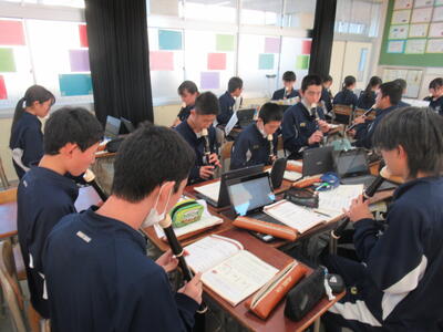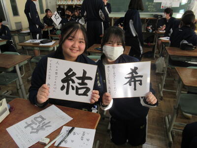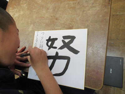 立志式「誓いの言葉」 投稿日時 : 16:25 南犬飼中学校管理者 カテゴリ: 12月5日(金)5,6校時、2学年の授業を参観しました。今日の学習は、立志式に向けて「誓いの言葉」を色紙に書いていました。自分の誓いを表す言葉を漢字一文字で表し、その横にその言葉に込めた自分の想いや決意を表現していました。立志を機に、改めて将来を見つめ、決意を新たにすることの重要性を実感します。 完成したようですね! {{options.likeCount}} {{options.likeCount}}